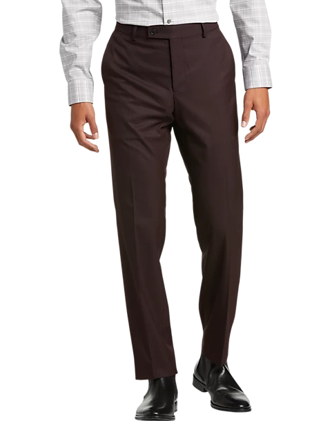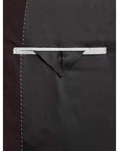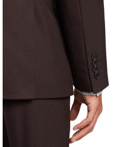 Look your best at the office or out on the town with this flattering burgundy tic Slim Fit suit by Wilke Rodriguez. This comfortable suit is ready for your busiest days with a touch of stretch for your active life.